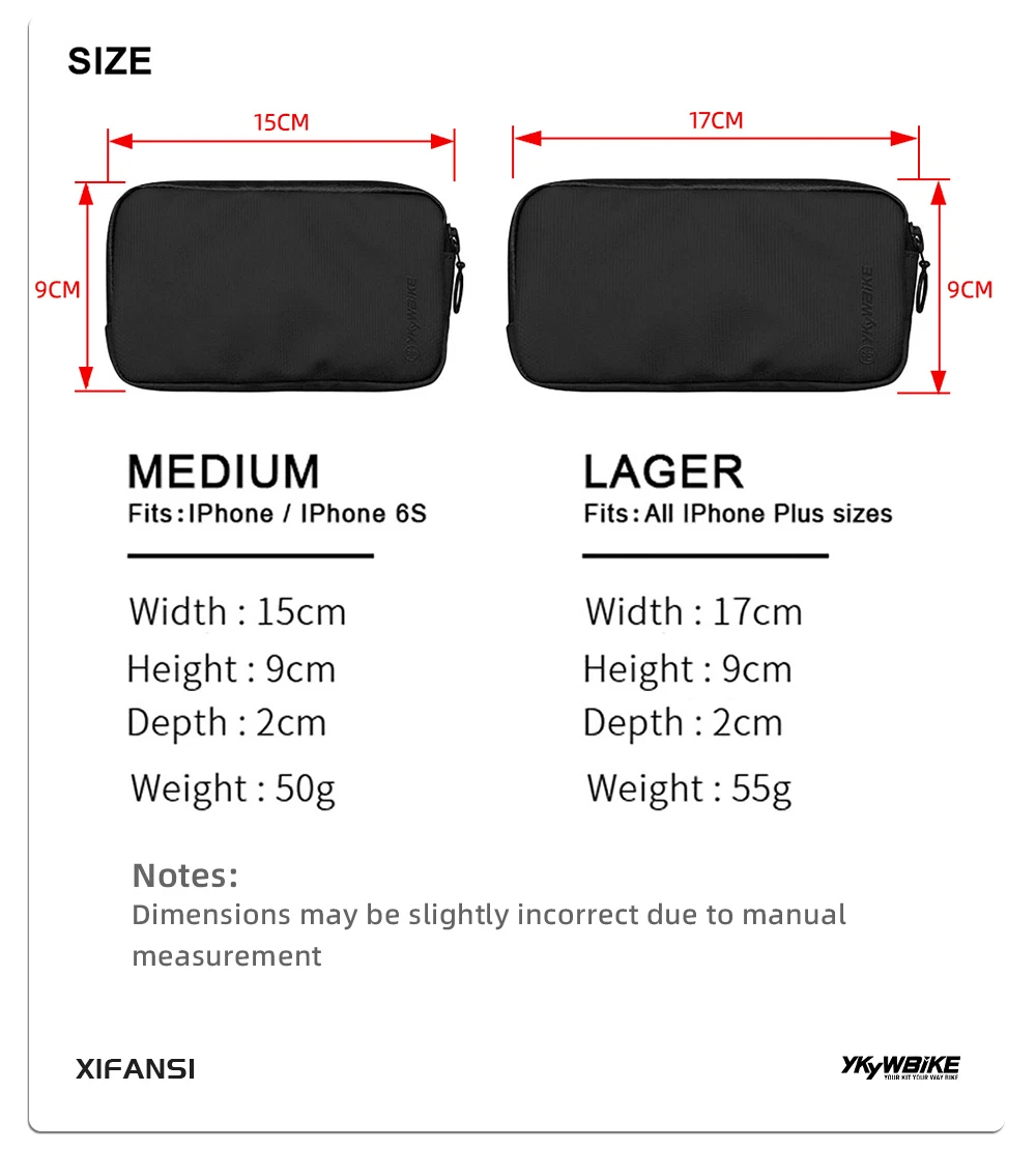 4.The bicycle phone bag is suitable for iPhone 8 Plus / 7 Plus / 6s Plus / 6 Plus and smartphones with dimensions not exceeding 170x90mm.