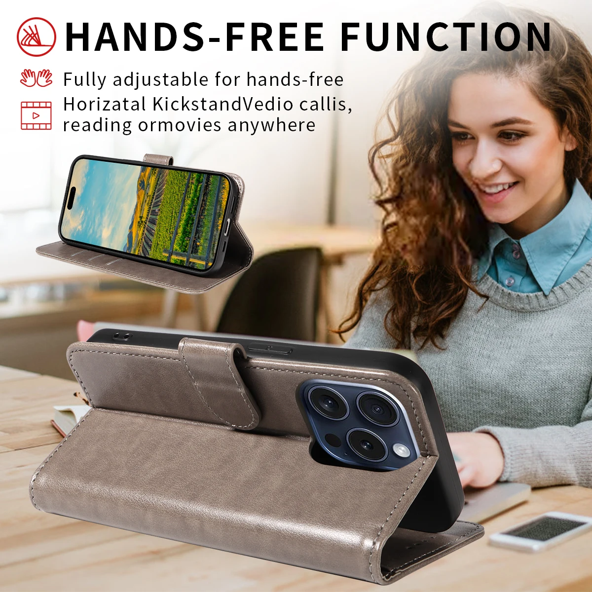 Faux Leather iPhone Wallet Case – Flip Cover with Card Slots for iPhone 11–14 Series, Pro Max, Plus, and Mini